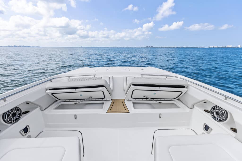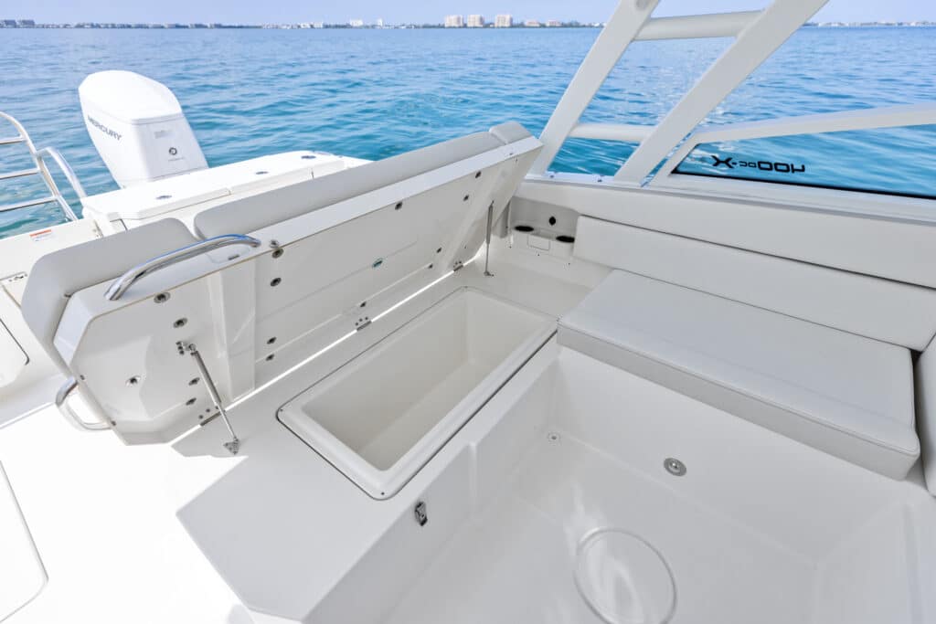 - Aft Facing Bench Seat w/ Fiberglass-Lined Storage Under