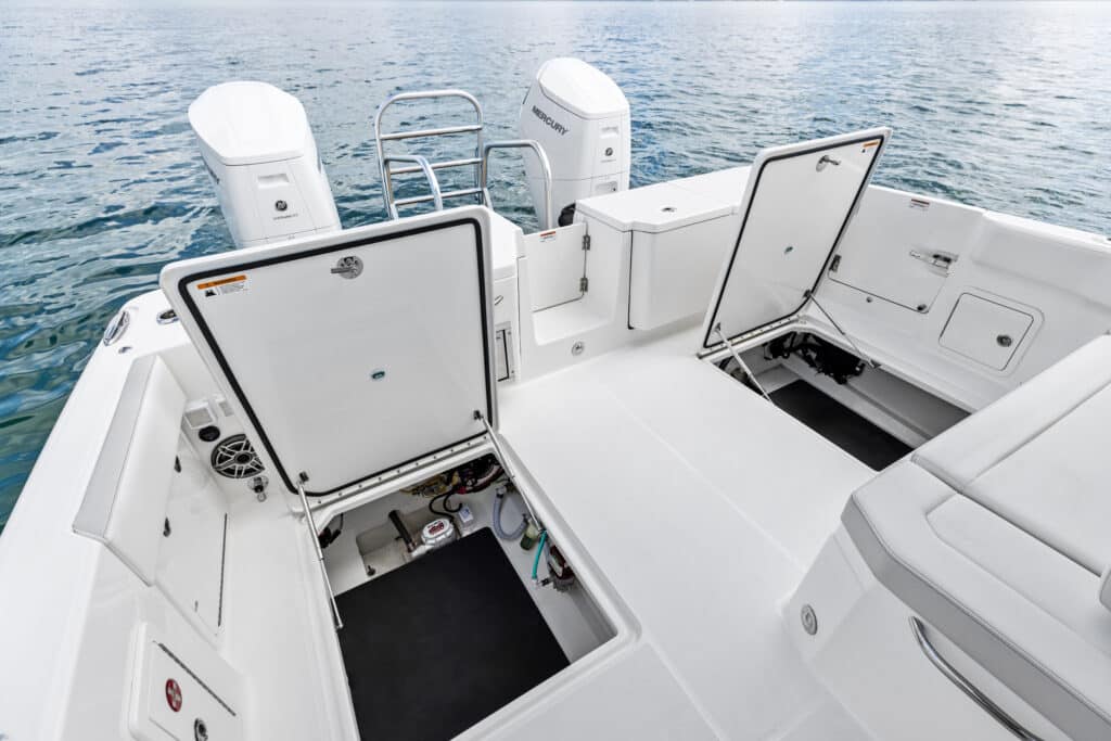 - Starboard Mechanical Room Hatch Access to Batteries, Utility Drawer Storage